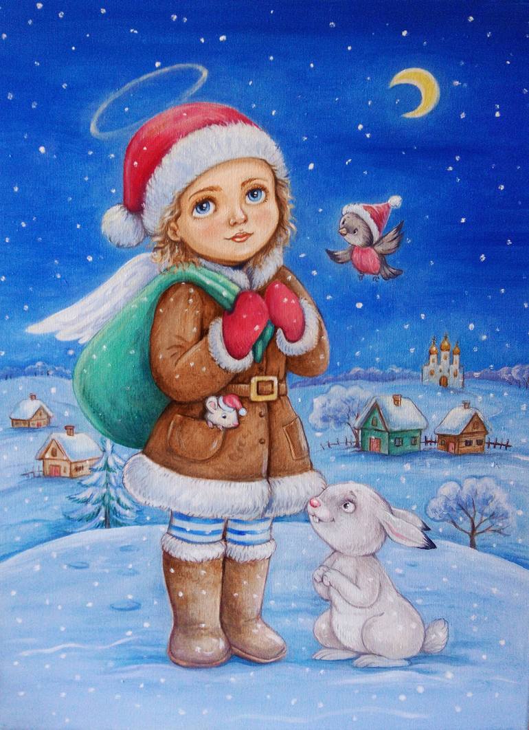 This is a painting about a Christmas Angel. Which comes every year to our homes and hearts.
