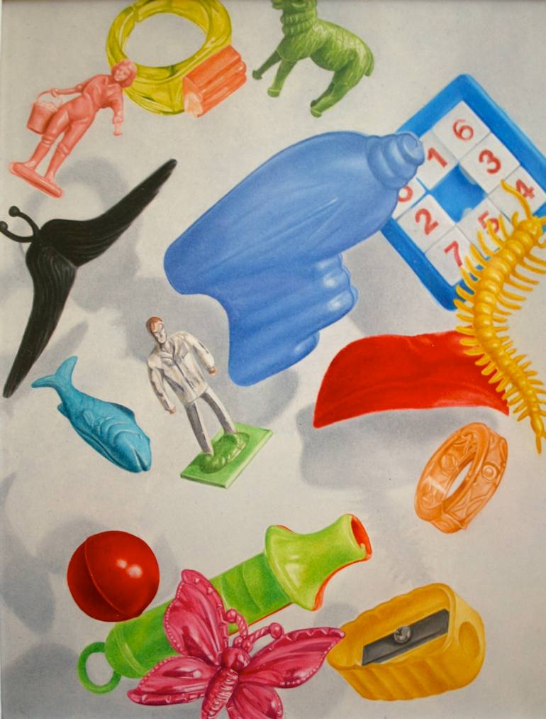 Inspired by the artists collection of Christmas cracker novelties collected over many years. The notion that these virtually worthless objects may be magical in some way and have the capacity to float and levitate is both delightfully humorous and whimsically appropriate. And yet everything they pu...