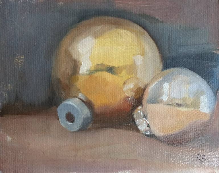 This is a still life of a simple subject, capturing the reflections and rich colours in a sphere.
