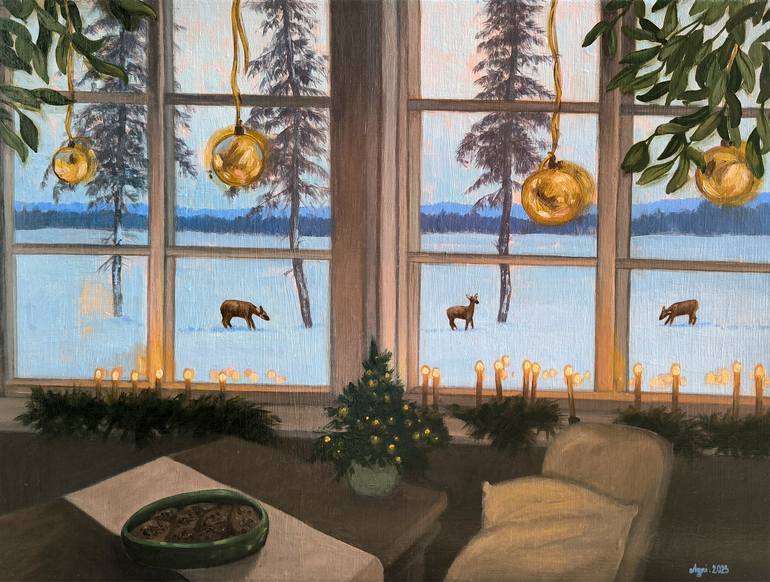 Acrylic painting on linen canvas. The artwork have painted sides in blue and is covered with a glossy varnish. "Christmas harmony" means silence, peace and joyful anticipation of the holidays. Who among us does not know this feeling, which is so strong that we remember it throughout our lives. We w...