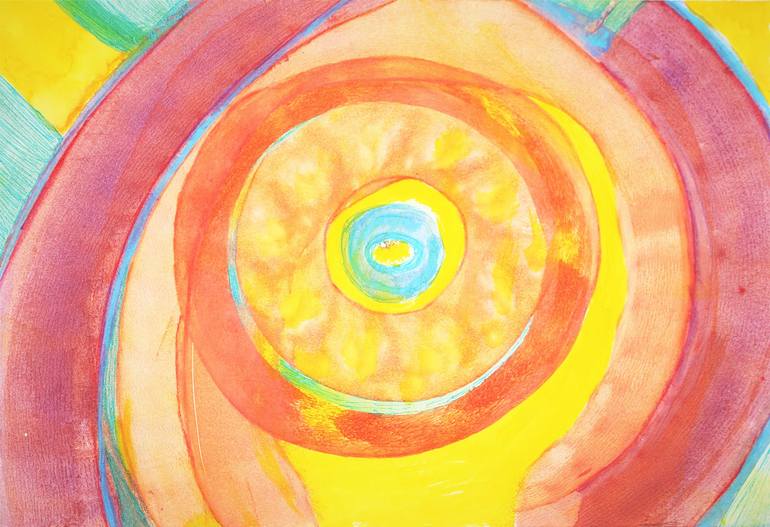 Large wall art. Original Abstract Painting. Colorfull on paper. Modern wall art. Acrylic, watercolor, ink, mixed media. Yellow, orange, turquoise. Title: Circle and Spiral SIZE: 20 x 13,7 inch - 51X35cm. The shipment will be released in 1 or 3 days, with suitable packaging so that you receive ...