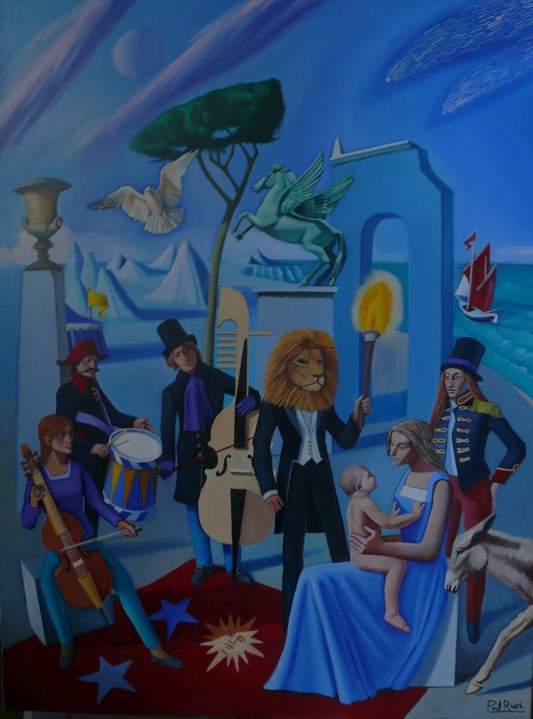 A parodic treatment of renaissance/Baroque Nativity paintings. The world described in that theological genre is here transposed into the poetic of early modernism with its fascination with circus and Comedia del Arte themes.