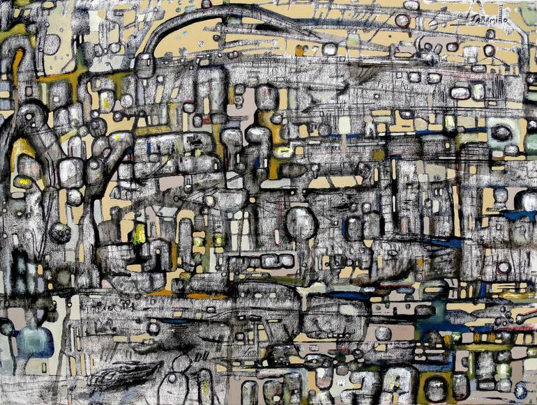 This small-scale work presents the city as a fragment of memory rather than a living system. Built from muted tones and dense textures, the composition suggests an urban landscape worn down by time, repetition, and forgetting. Forms appear layered and partially erased, as if the city were slowly di...