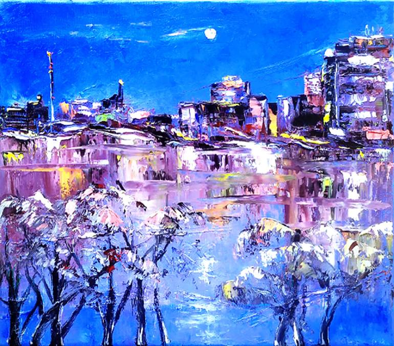 100% City View Painting Original Art Sky Oil Painting Small Picture City Night High Houses Skyscrapers Impasto Above Sofa Art 14by16" *The ends of the picture are painted over! * Size: 14x16 inches DETAILS * Original handmade oil painting * Title : City View. * Painter: Svitlana Prokopalo * Size: 1...