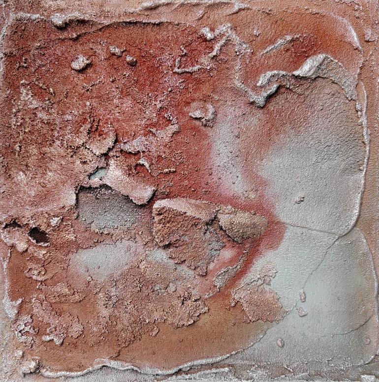 Contemporary, textured abstract painting on stretched canvas. Part of "Jewels of the sea"-series. With shiny metallic details. - Mixed media; acrylics, natural earth pigments, sand, texture medium, binder - White edges - Gloss-finish protective varnish on top to protect from dust, moisture and ligh...