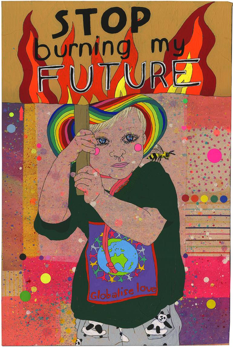 Inspired by the School Strikes For Climate, this artwork is part of a series based around protesting children. The subjects are drawn from images provided by parents, found reference and my own photoraphs from school strikes in Australia and the UK. All of the children are real climate protestors. I...