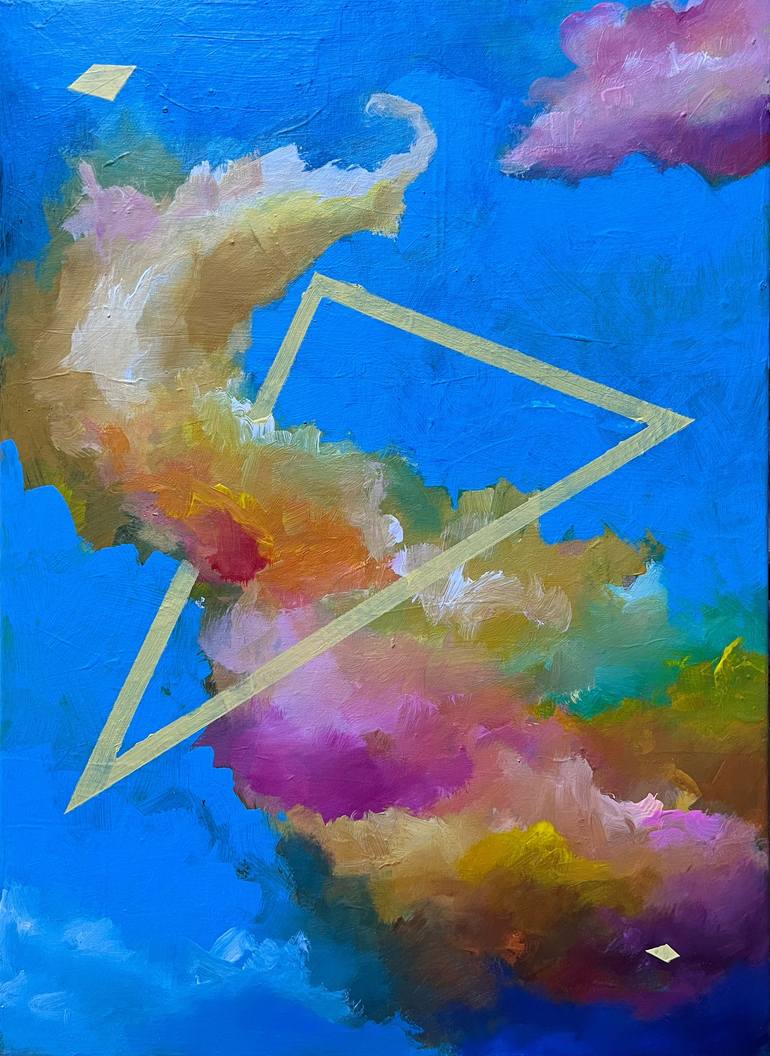 A series of abstract paintings titled Cloud Geometry, explores the intersection between the logical human world and the diverse forms and characters of clouds.