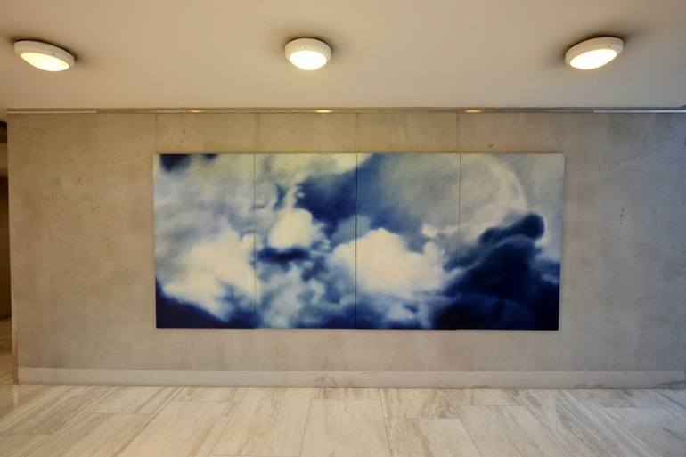 Polyptych 4 panels 92x160cm each painting size 368 cm x 160 cm Oak frame available 2 weeks waiting time Paintings of clouds are an idea of materializing the immaterial, painted from remembrance and impression. Clouds are unrepeatable, unfixed, universal, Heavenly, in eternal movement, visible but...