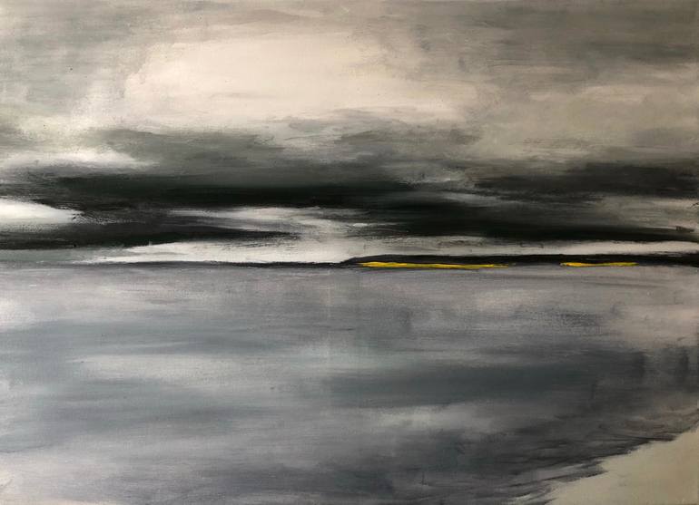 I had made a small watercolour sketch of a bay with looming clouds over it many years, but hadn't returned to it until I came across it in an old notebook which prompted me to paint this larger version in acrylic.