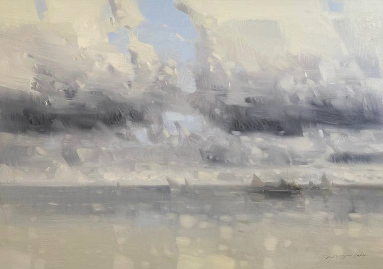 Artist: Vahe Yeremyan Work: Original Oil Painting, Handmade Artwork, One of a Kind Medium: Oil on Canvas Year: 2022 Style: Contemporary Art, Subject: Cloudy Bay, Size: 30.5" x 43.5" x 1'' inch, 77x111x3 cm, Unframed, Stretched on Wooden Bar, Gallery Wrapped, Ready to Hang. Yeremyan is an Ame...