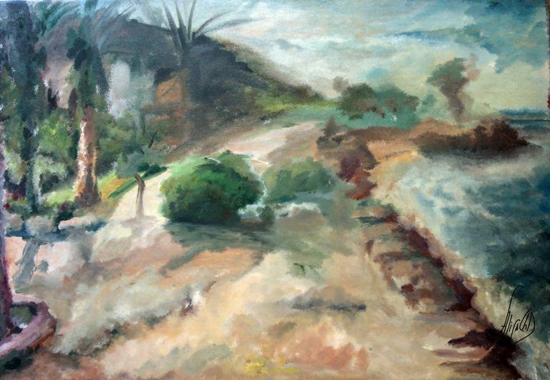 This oil painting captures a serene yet dynamic landscape where the land meets the sea. Inspired by a real coastal path, the artwork was created during a plein air session, allowing me to immerse themselves in the atmosphere of the place. The painting conveys the movement of the wind, the shifting l...