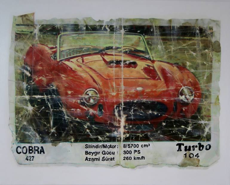 "Cobra", oil on canvas, 80x100cm,2016 This painting is inspired by iconic pictures from Turbo Bubble Gum. It is an illusion of a painting inside a painting. This piece was painted smoothly, with almost no signs of texture. It was painted expressively and in a very fast pace. It refers to American hy...