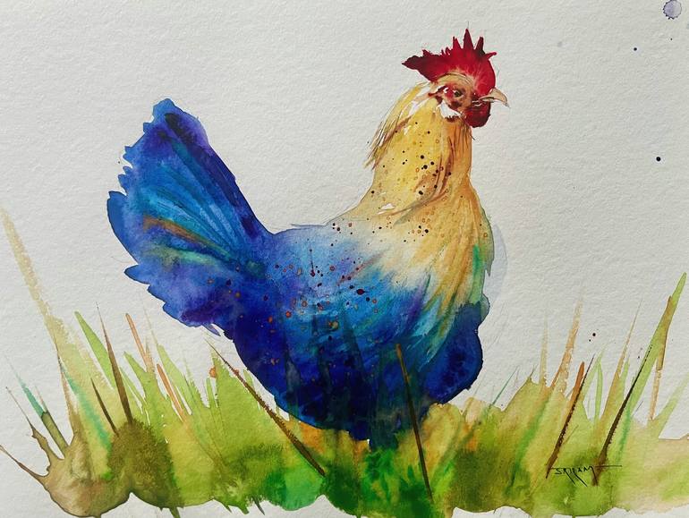 This is my 2nd work in the bird series with Watercolours. I want to go unconventional with my colour palette for this series and have incorporated some vibrant colour patters. What is a bird series without a chicken?