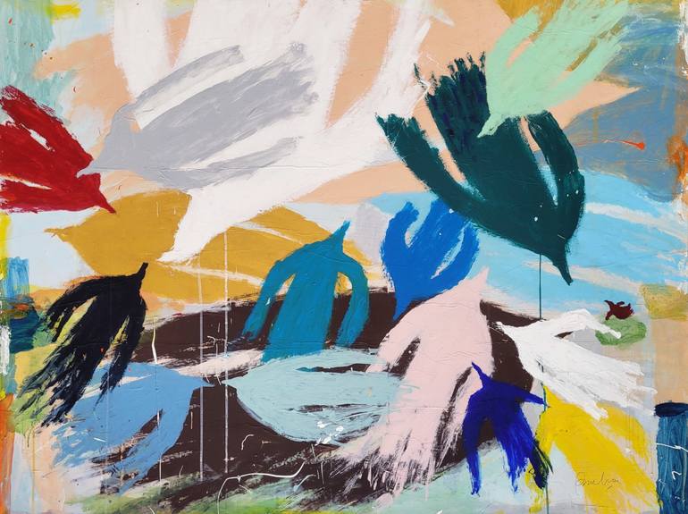Color Birds II - Painting on wood panel Painting