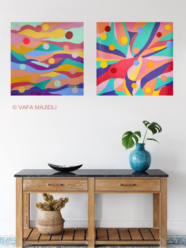 Escape into a kaleidoscope of wonder with 'Colorful Surreal Dreamy Landscape', a stunning diptych of paintings that will transport you to a world of vibrant colors and surrealistic splendor. As radiant suns traverse the dreamy landscape, the boundaries of reality blur and the imagination runs wild. ...