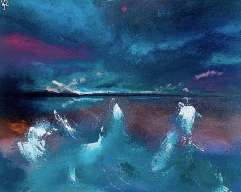 Painting is on stretched canvas. I wrote a poem about the sense that inside of this painting. Storm can be so uniq So many sparks and changes of heaven In every move we can find, we can see Sacral sense and phenomenon random V.Sign