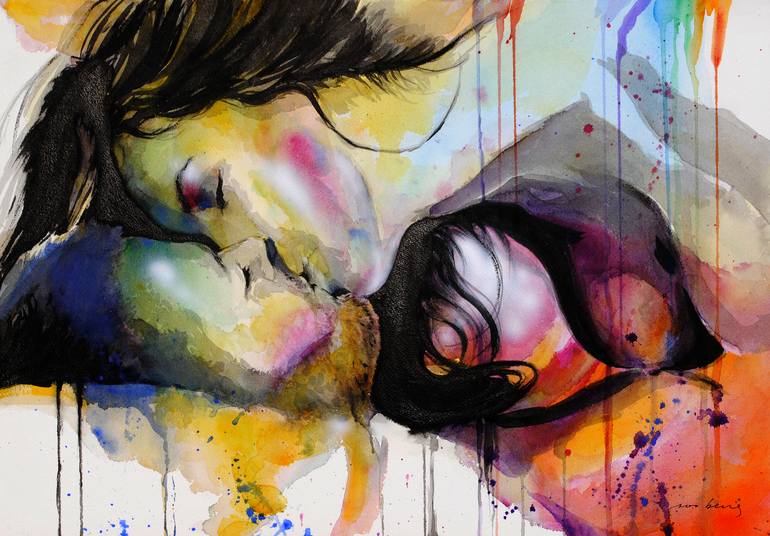 Lovers in a passionate embrace. Arches watercolour 300gsm paper.