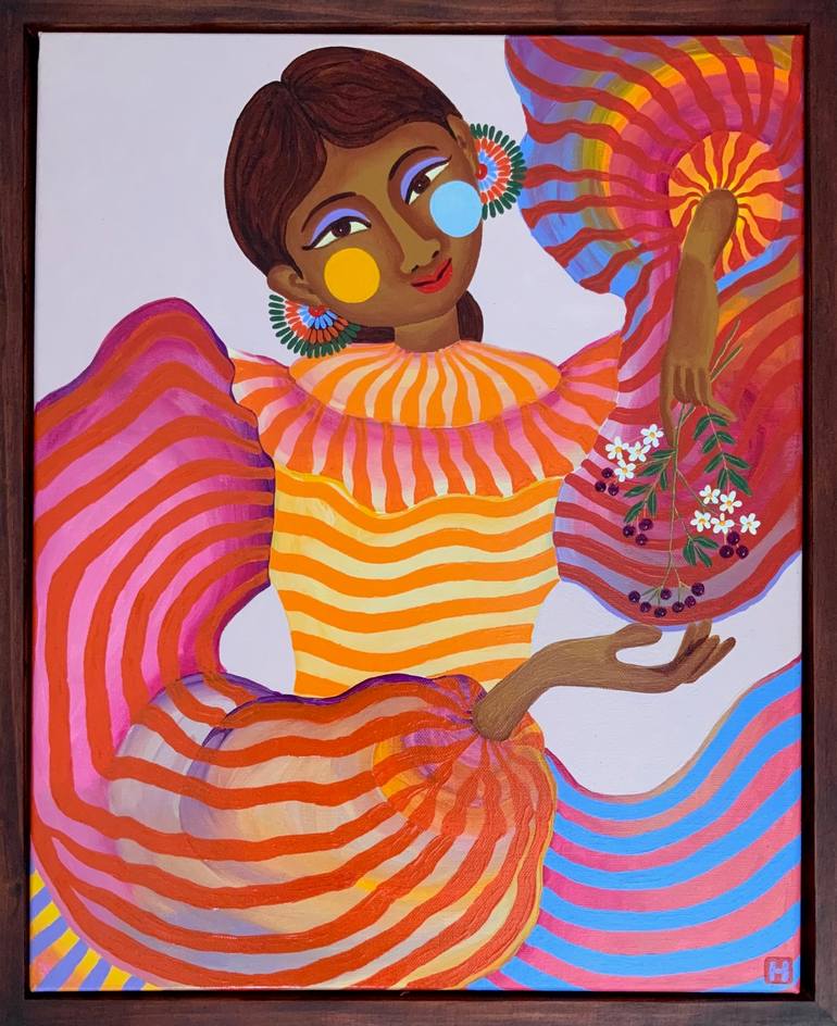 Hiranya is a classical figurative Painter based in Brisbane, Australia. She exclusively produces works derived from her cultural Heritage and personal history. Bold colours and symbolism are a focus point. She is currently showcasing three Collections on here: (i) REVIVAL OF THE NYMPH: An ode to the Nymphs found in the works of modern masters and bringing them to the now. (ii) FLORA'S SECRET: A Summer-floral themed series where the artist is breaking all the boundaries of colour and patterns with lots of details around the narrative female identity. (iii)TEA ROOM: A personal fascination. A series that stays within stripe patterns on the subject's outfit, starting from simpler-minimal stories to sophisticated tales with her personal favourites; colourful tea cups and tea pots, and all other details come with it. Each work takes its own significant time to finish based on the amount of details going in. The beauty of every aspect and little details of each work is extremely important to the artist. Hence they are carefully realised. Instagram: Huesbyhiranya Website: Huesbyhiranya