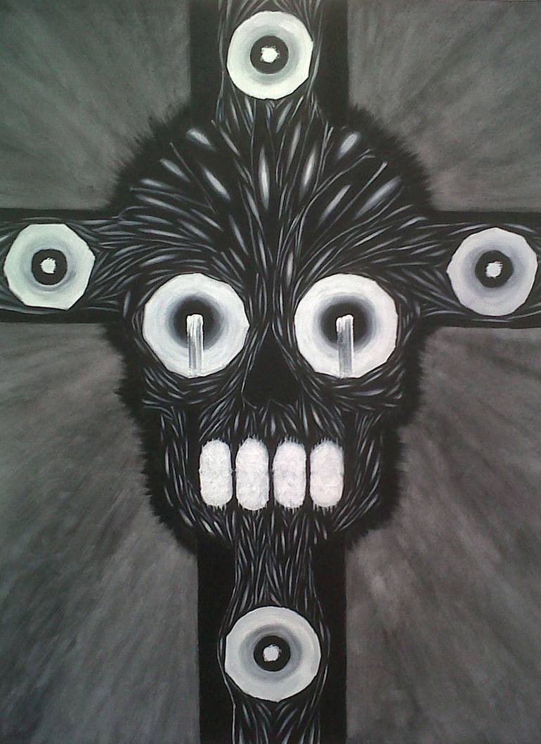 This piece comes from a series entitled Death Inc. Inspired by the Mexican tradition of The Day of the Dead I created a re-scalable Skull design. I used the simplicity of calavera skull image. This design was used to 'brand' each piece as I began to consider, if Death were a company, what would it'...