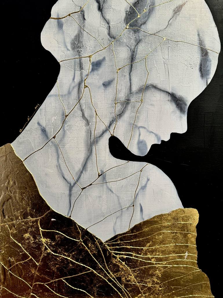 Ramona Russu is a Romanian painter who graduated from the Royal Academy of Fine Arts in Brussels and settled in Corsica in 2014 to pursue her creative journey. Her artistic work explores the complexity of women's emotions and experiences, and highlights the idea of imperfect beauty through monochrome pieces enhanced with 24-carat gold leaf. Inspired by the kintsugi technique, which honors the aesthetic and spiritual value of imperfection and the process of repair, Ramona explores the philosophy of wabi-sabi, which values the beauty of impermanence, imperfection, and incompleteness. In her paintings, the cracks, imperfections, and scars that life leaves on each of us are celebrated as part of our history and a source of strength and beauty. Her works are present in private collections around the world and exhibited by prestigious galleries in Romania, Spain, Italy, Argentina, and the United States, alongside artists such as Basquiat, Murakami, Andy Warhol, KAWS, Banksy, and other important and emerging names in contemporary art. Her growing international recognition was demonstrated by her selection to exhibit her paintings at the International Biennial of Contemporary Art and Design in Florence in 2021 and 2023, alongside artists such as Andrea Roggi, Oliviero Toscani, Michelangelo Pistoletto, and Vivienne Westwood. Ramona Russu is an expanding artist whose unique vision of women and beauty continues to fascinate and inspire an increasingly wider audience.