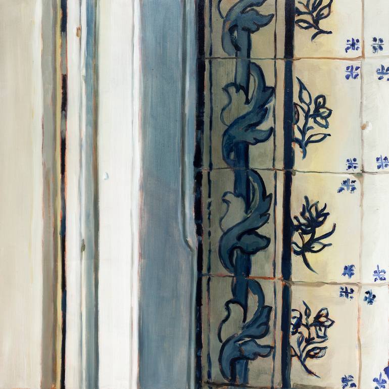 Composition #3 is an oil painting in medium scale that representes a corner ina an secVIII portuguese house with the typical hand mande tiles. The ideia was to mix realism with abstract in a not obvious way.