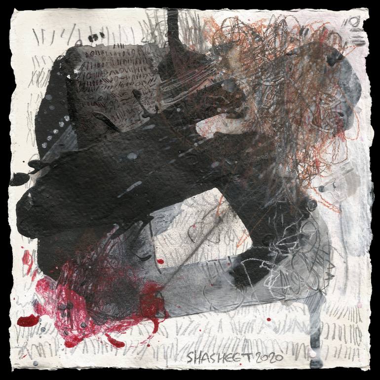 Abstract self-expression artwork using mixed media on handmade paper from Khadi Papers India. Made from 100% long fibred cotton rag. 20.5cm X 20.5cm (8inch X 8inch) 320GSM Used various materials like acrylic, gesso, coloured pencil and ink on Khadi cotton paper with a finish of matt varnish. Sign...