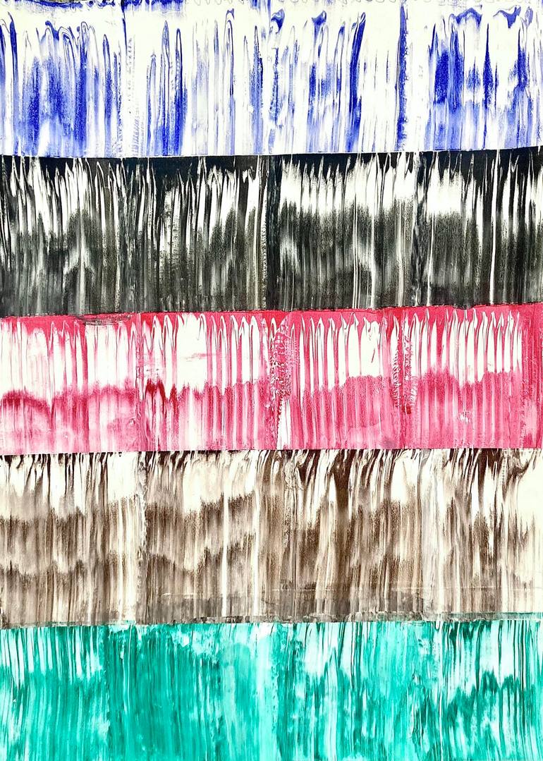 Acrylic paint on archival paper. Painting made with a unique technique to achieve desired results where two colours are combined for each row and painted in fashion to achieve melting/fluid patterns. Painting shipped rolled safely in a tube with Certificate of authenticity.
