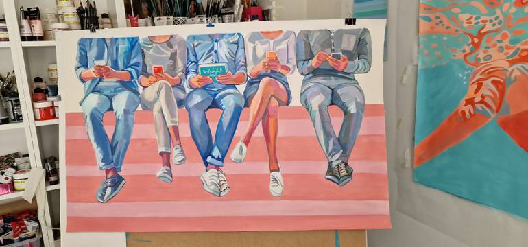 Acrylic painting on Canvas One of a kind artwork Size: 120 x 72 x 4cm (unframed) / 120 x 72cm (actual image size) Signed on the front Style: Urban and Pop Subject: People and portraits