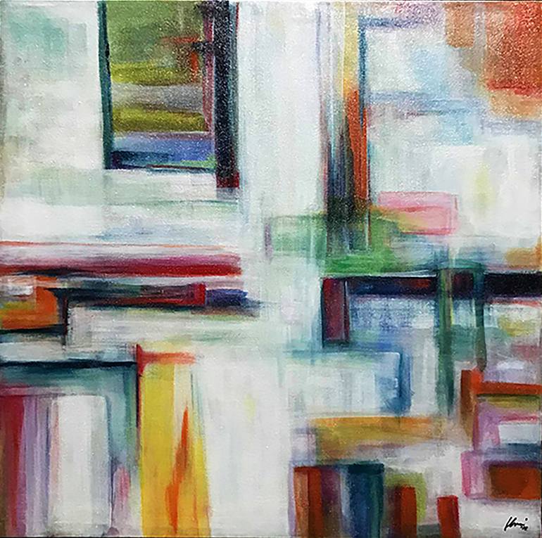 Congruence No. 9. Acrylic on canvas. A very vibrant and colorful masterpiece using iridescent acrylics to bring out the life in the painting. The lively colors exhibit good feng shui for the home. Signifies life, love, success, harmony, bounty, good health, and positive vibes.