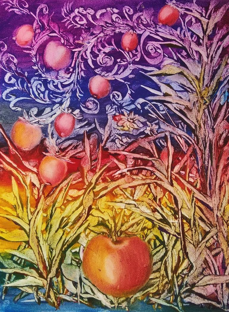 Painting painted in the author's technigue , oil onthe corbon . The subject of this work was for me the diversity of our world , its statis and at the same moment mobile , elusive beauty, giving birth to itself and absorbing, so that it would be born again...