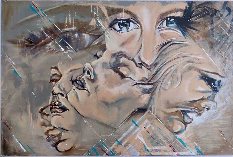 Woman’s face through movement and emotion. This contemporary, modern acrylic painting on stretched canvas, displays a realism of portrait yet, impressionism of multiple woman’s faces; figurative, portraiture, I’m inspired by Shieles’ raw, intense, expressive lines and my love of painting the human...