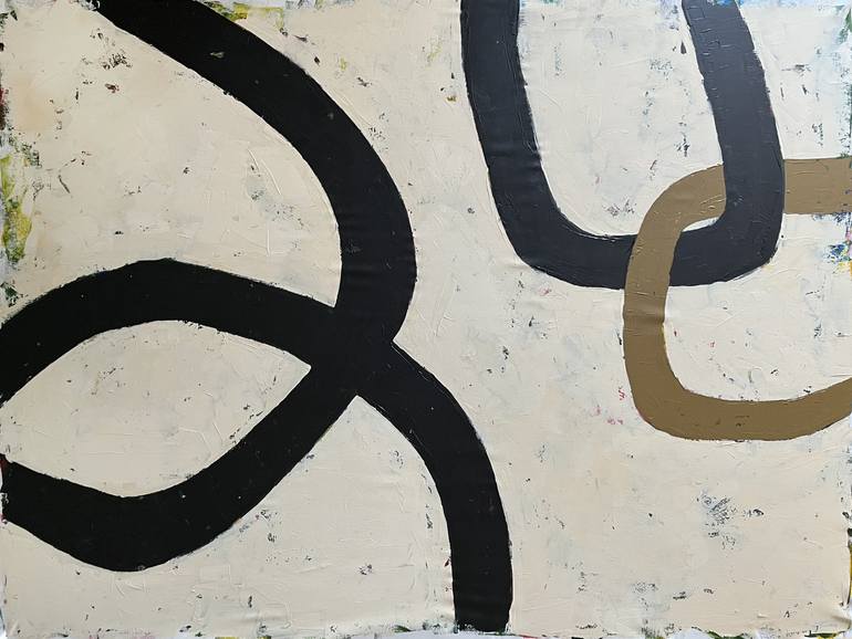 A large abstract artwork of shapes and texture. The artwork is made up of lots of layers of paint which show through to make subtle colours and texture. The background is a warm light pale cream and with several colours coming through. Painted on high quality canvas, ready to be either stretched on...