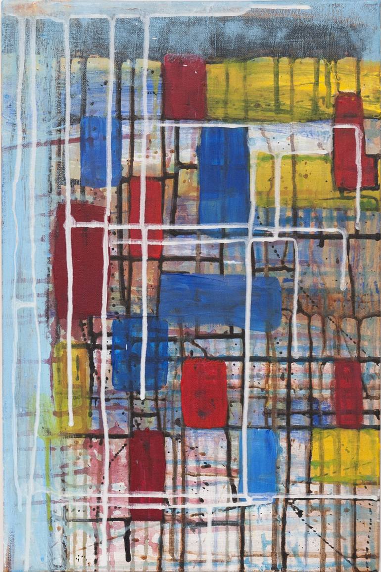 For a very long time I did not understand the work of Mondrian. Over the last couple of years however, I have found a great admiration for his style and his work. This painting was inspired by his last piece ... Victory Boogie Woogie. 12x18" (edges are finished 1.5") Acrylic on canvas 2018 All hard...