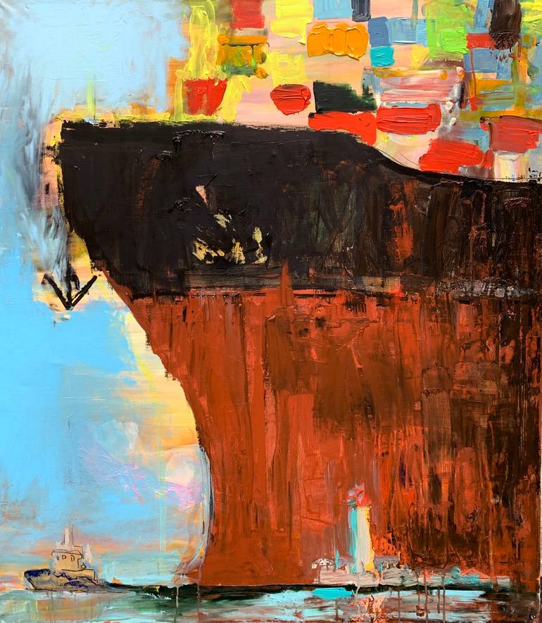 “ Container ship” 2021 115 × 110 cm (45 × 43 inch) Painting Acrylic, Oil on canvas