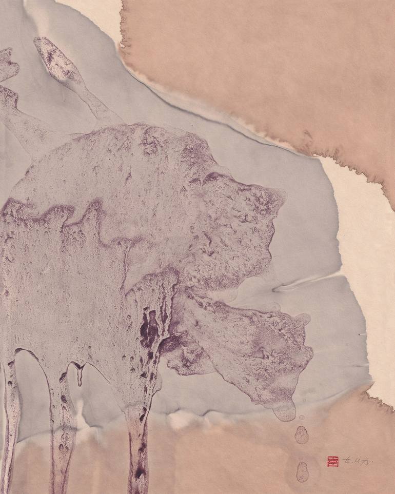Artwork from the Contemplation series, using Japanese Sumi-e technique (different washes of ink and mineral pigments) to exploring minimal, painterly and introspective expressions. – Contemplation N°22 was created using Sumi ink, walnut ink, Nikawa and Moroccan Ochre pigments on Awagami Kitakata Wa...