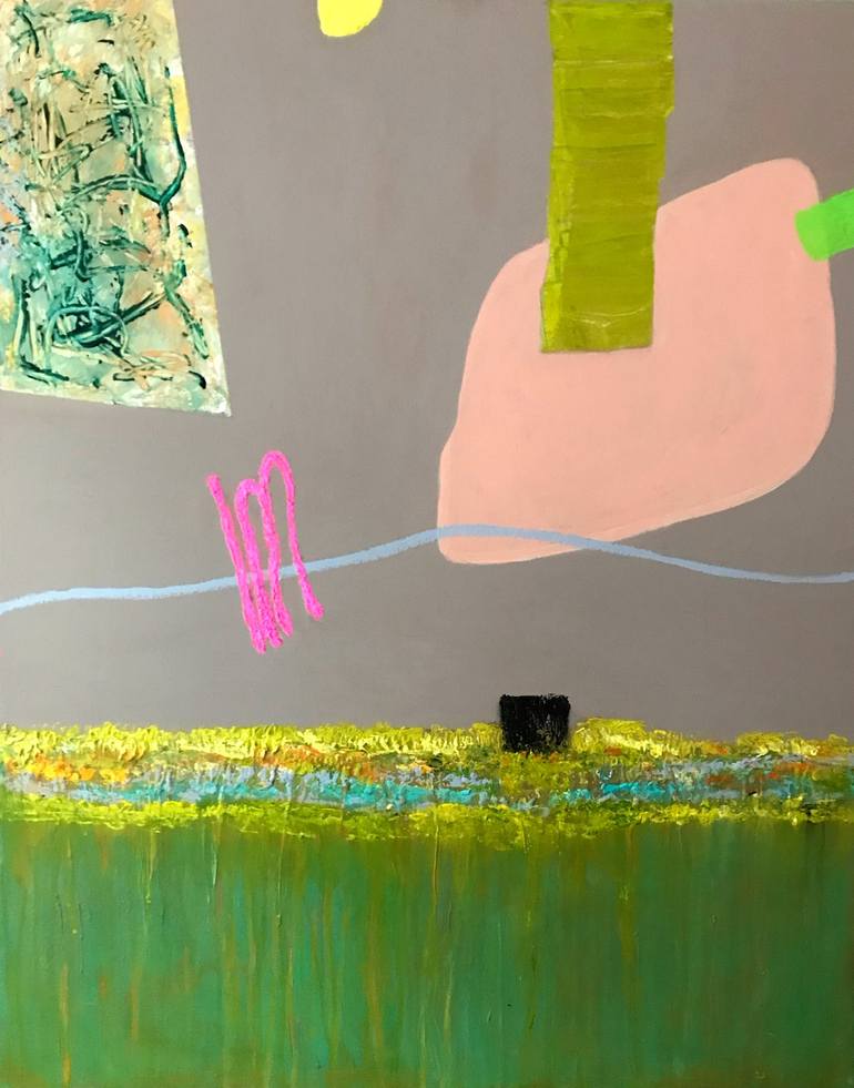 ‘Contemplation’is an unusual piece for me being thoughtfully considered in composition and configuration placing ‘islands of colour’ in a minimalist style to give space and a liberating clarity to the forms contained within. A roughly textured horizontal plane and suspended motifs contrast with smoo...