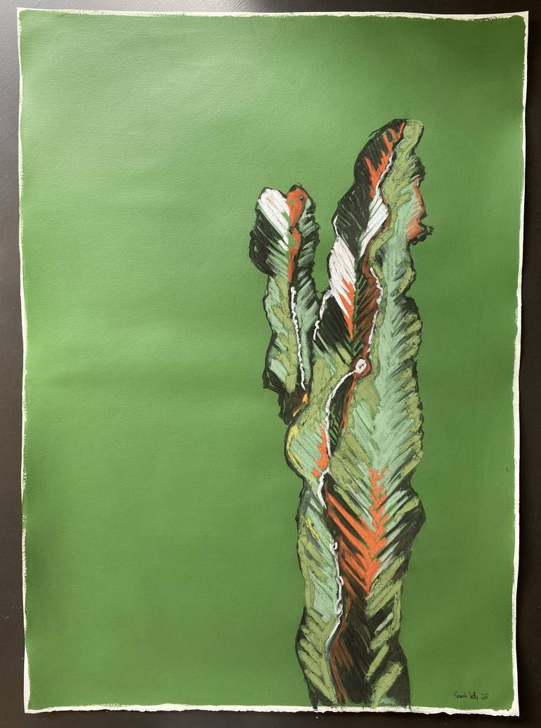 I was inspired by nature, the wild euphorbia plants that grow in my back garden within South Africa, being indigenous. Giving a modern, contemporary pop art feel. The artwork is done on cotton paper 300gms, acrylic painted backdrop with wax, mixed media and charcoal and gouche subject matter creatin...