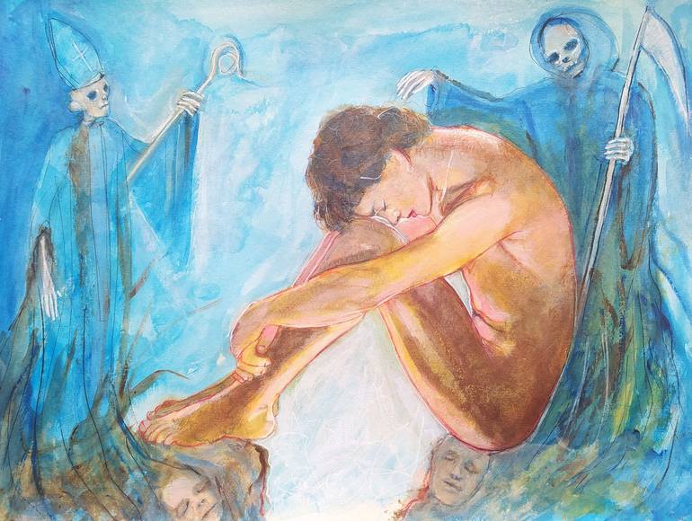 One-of-a-kind original artwork, acrylic on 300 gsm fine art paper. A painting to evoke the barbarity of these conversion therapies aimed at "curing" LGBT people.