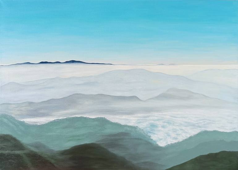 The artwork belongs to the Over the Clouds series. While quarantined home, I found inspiration in my previous plane travels and the gravity cancelling feeling which flying gives. Going through anxiety, fear and dear ones loss to tranquility, I developed the Skyscapes series (Over the Clouds, 2020-2...