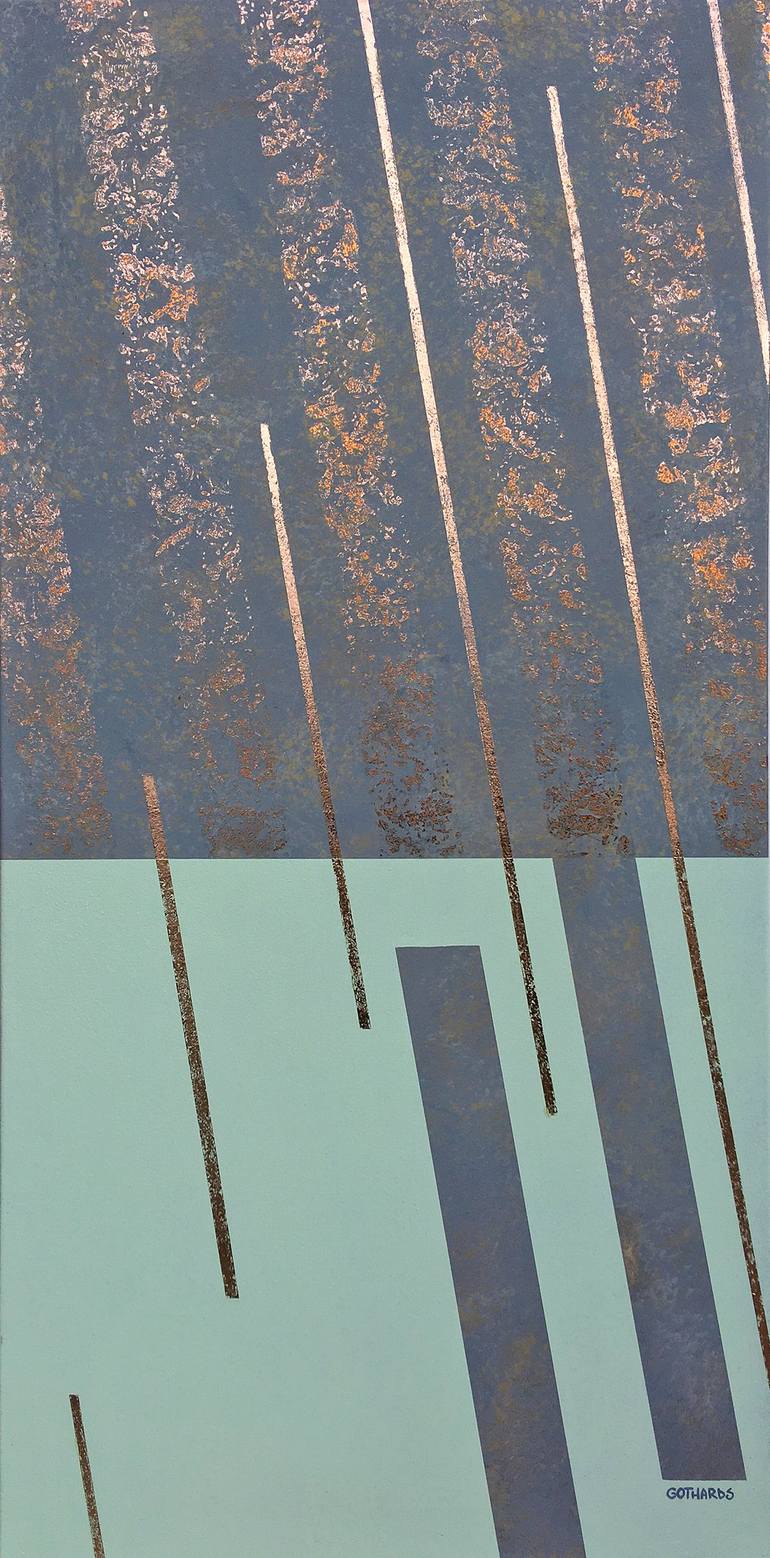 Painting on canvas, mixed media. Background is done with multiple layers of glazing, copper is from a printing technique, using a copper foil atop of varnish, applied in a unique matter. I enjoy mixing and playing around with different textures, tones and techniques. My professional career as a dec...