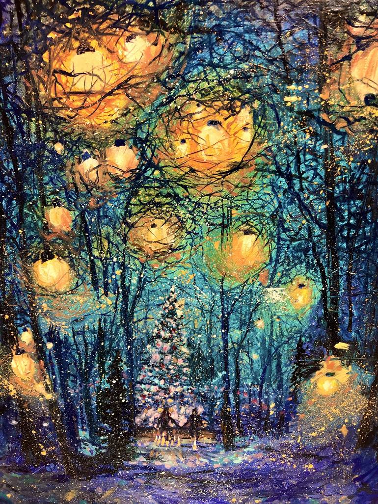 I like to mix different styles in my work. Especially realism and impressionism. Add movement, and animate my works so that they are alive. I was inspired by the festive mood of Christmas and love in this cold time. I wanted to show the joy and comfort of such simple things.