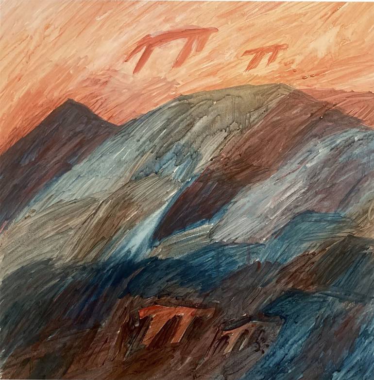 "Red animals in a red sky" 50 x 50 cm Year 2022 Nuria S. Alegría