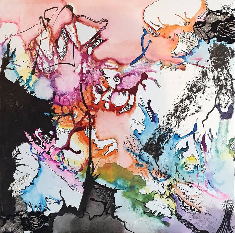 "Est meilleur que perle et corail le geste que l'homme dédie à l'homme" Toile Encre abstraite Couleurs dominantes: Multicolore Mélange harmonieux de couleurs et de traits, marié à la dentelle pour une pointe de luxe? Œuvre colorée Disponible de suite