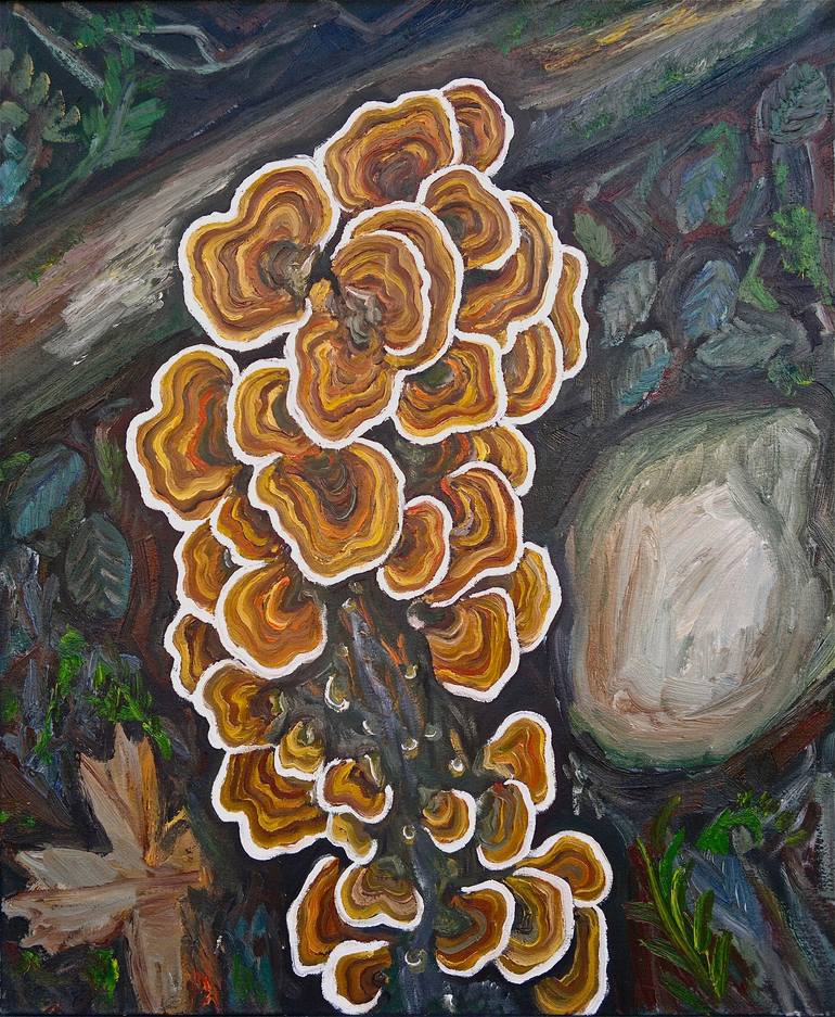 this heterotrophic fungus is found on forest floors on decaying fallen trees. its abstract nature is 'art natural'.