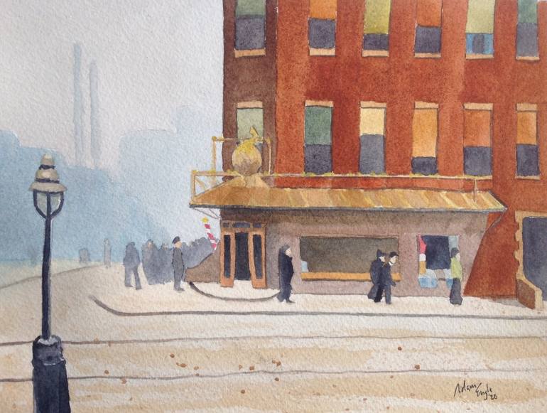 This watercolor was done after Hopper's oil painting done in 1913. This watercolor was done on the best Arches 140lb paper and painted with Winsor and Newton, and Daniel Smith watercolor paints. The scene depicts a busy street corner in New York City over 100years ago.