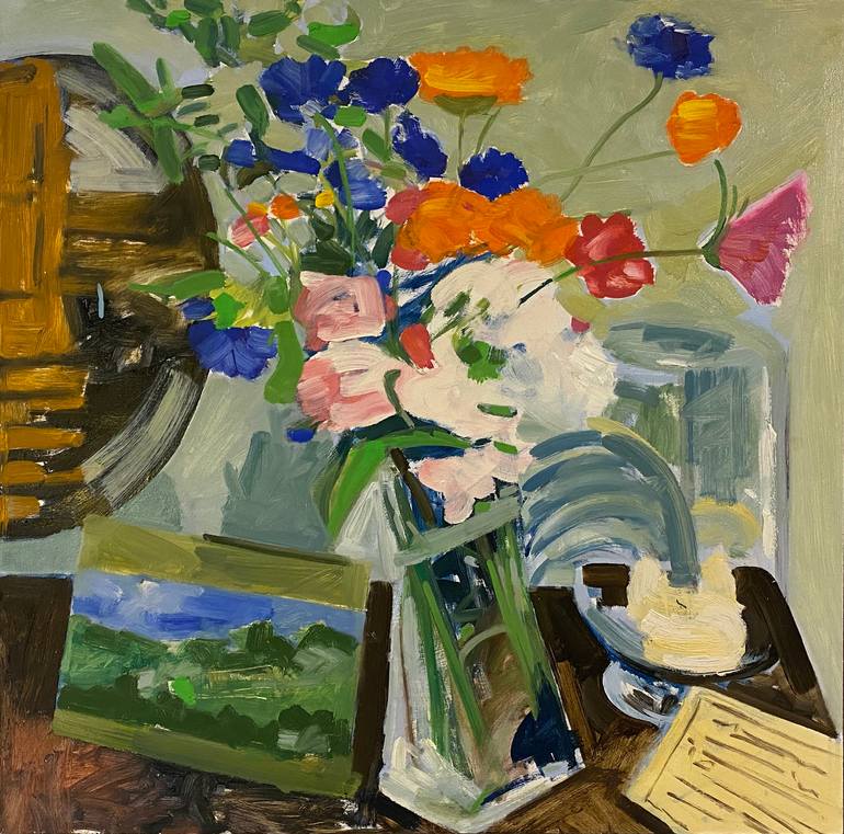 Inspired by a weekend visit to a countryside boutique hotel to celebrate my Mother's 70th birthday I saw this bouquet of flowers in Reception and I thought that it would make for a fantastic painting. I love cornflowers and the combinations of blues and oranges within the bouquet worked so well. Thi...