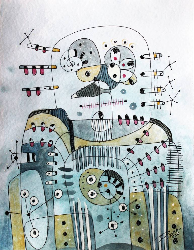 Painting part of a series of abstract and figurative, taking into account the stroke of the brush and the color above the forms.