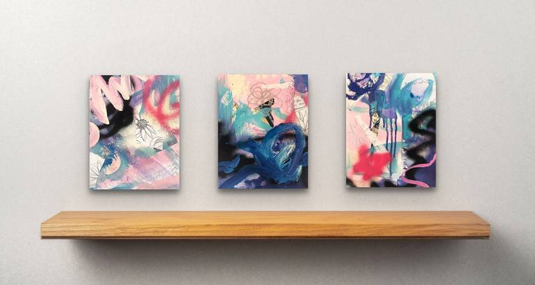Cotton Candy is a triptych made of 3 individual 8x10 canvases: You're Not Alone, Waiting, and Compassion Robert Rausenberg's art was groundbreaking for its use of found objects and everyday materials. He famously said, "I think a painting is more like the real world if it's made out of the real wor...