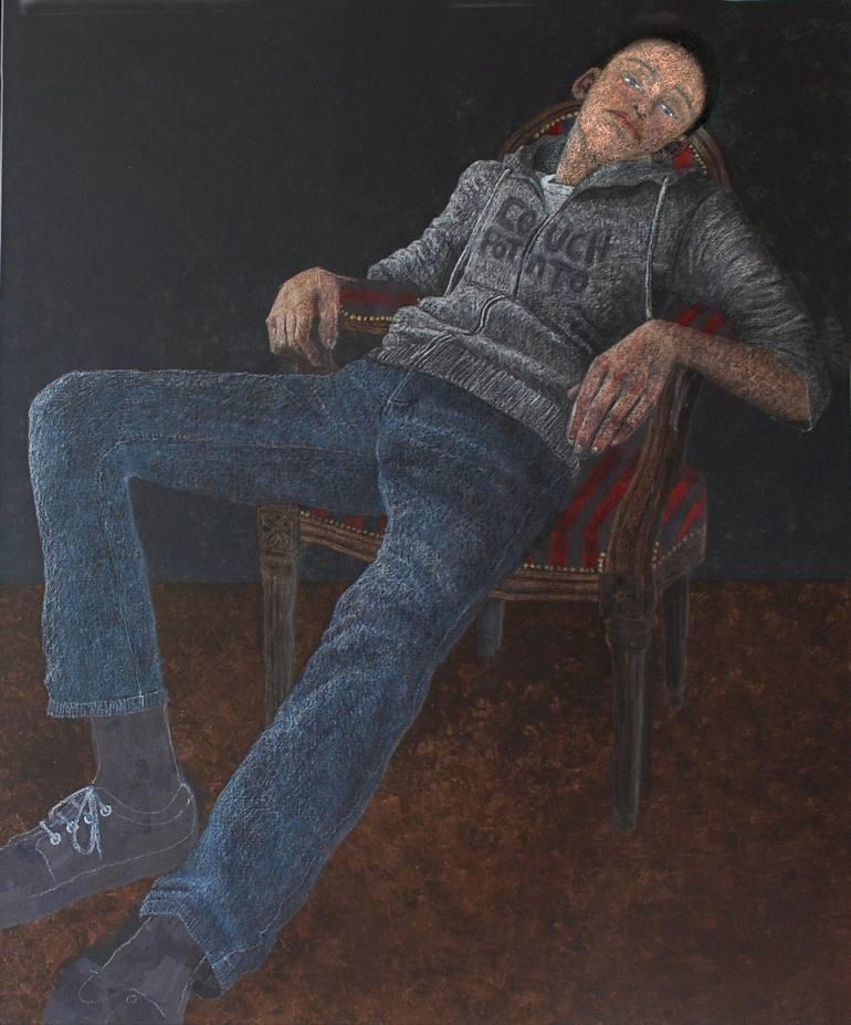 Couch-potato : A boy sprawled on a vintage chair Louis XV