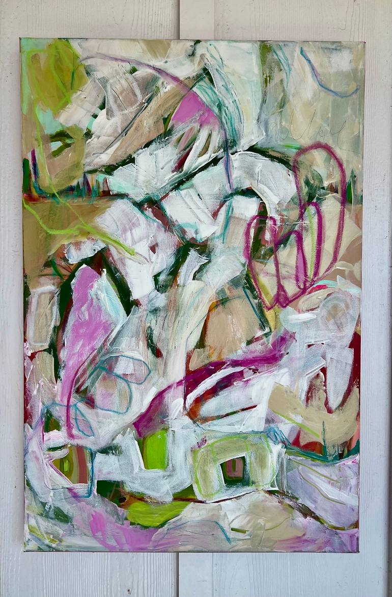 I am an abstract painter born, raised and living in New Orleans. Artist statement- “Are we there yet?” This is what I ask myself when I paint. Abstract painting allows me the space and time to explore and create through shapes and colors, and when the journey is complete, the painting is “there”. I love the process of creating a painting because from start to finish, you don’t know where it will take you. The movement created by the shapes and colors takes the viewer on an adventure, and each painting is a different experience for different people at different times. I love the hidden treasures within each piece, but also that each piece is a cohesive whole. The freedom and creativity of abstract painting allows me to discover new feelings and new places every time I put paint to canvas.